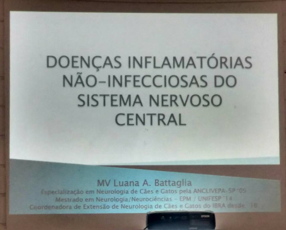 Fotos Acessos: 892 Neurologia: meningoencefalite granulomatosa Imprimir Email Dia 21 de Junho - Neurologia: meningoencefalite granulomatosa Palestrante: MV Dra Luana de Assis Battaglia Patrocínio: Previous article: Atualizações Terapêuticas na Cardiologia de Cães e Gatos Ant Next article: Simpósio de hematologia e patologia clínica - 4 Dia Próximo