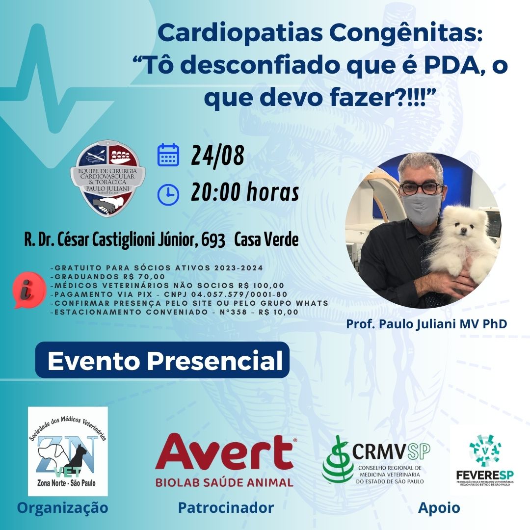 Acessos: 457 Cardiopatias Congênitas: “Tô desconfiado que é PDA, o que devo fazer?!!!” Imprimir Email Previous article: Eleições SMVZN-SP Ant Next article: Senilidade X Alterações Renais Próximo
