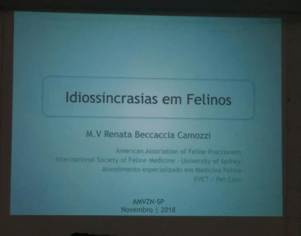 Fotos Acessos: 595 IDIOSSINCRASIA EM FELINOS Imprimir Email Dia 06 de NOVEMBRO Palestrante: M.V. Renata Camozzi Patrocínio: Previous article: Churrascão 2018 Ant Next article: 1º Pet Club AOPM Solidário Próximo